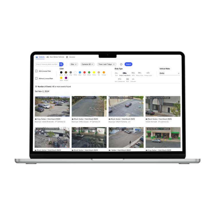 Identify and track vehicles in real time using advanced recognition technology. Search vehicles by color, brand, type, or license plate to streamline security operations and incident reviews.